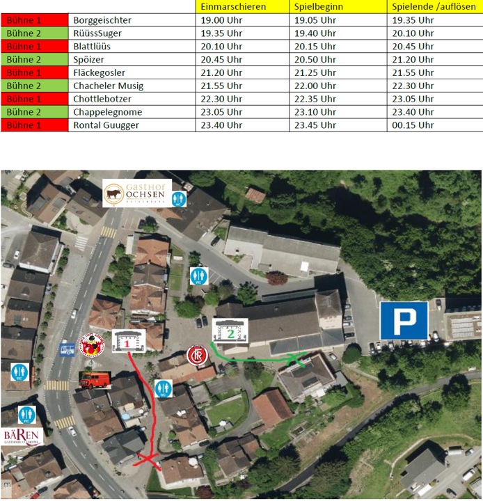 – 19.00 Uhr Auftritt erste Guggen (Borggeischter Rothenburg)